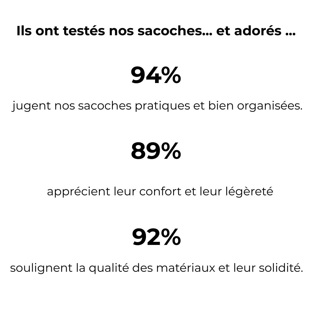 Absolument ! Grâce à leur design ergonomique et leur légèreté, nos sacoches réduisent la pression sur l’épaule et s’adaptent parfaitement à votre silhouette.